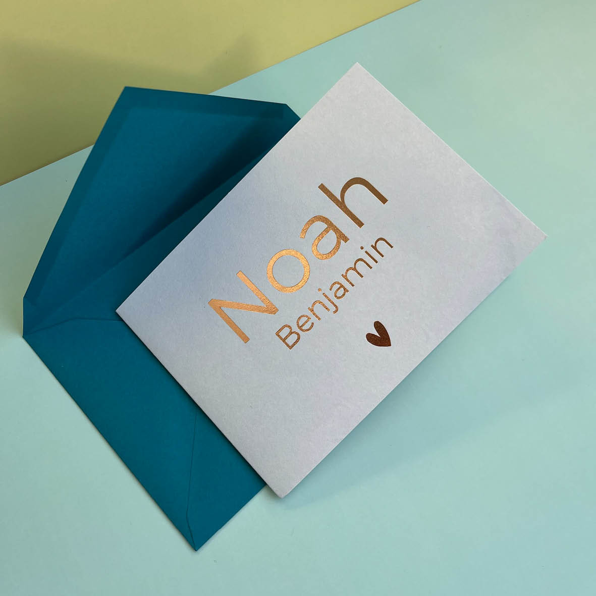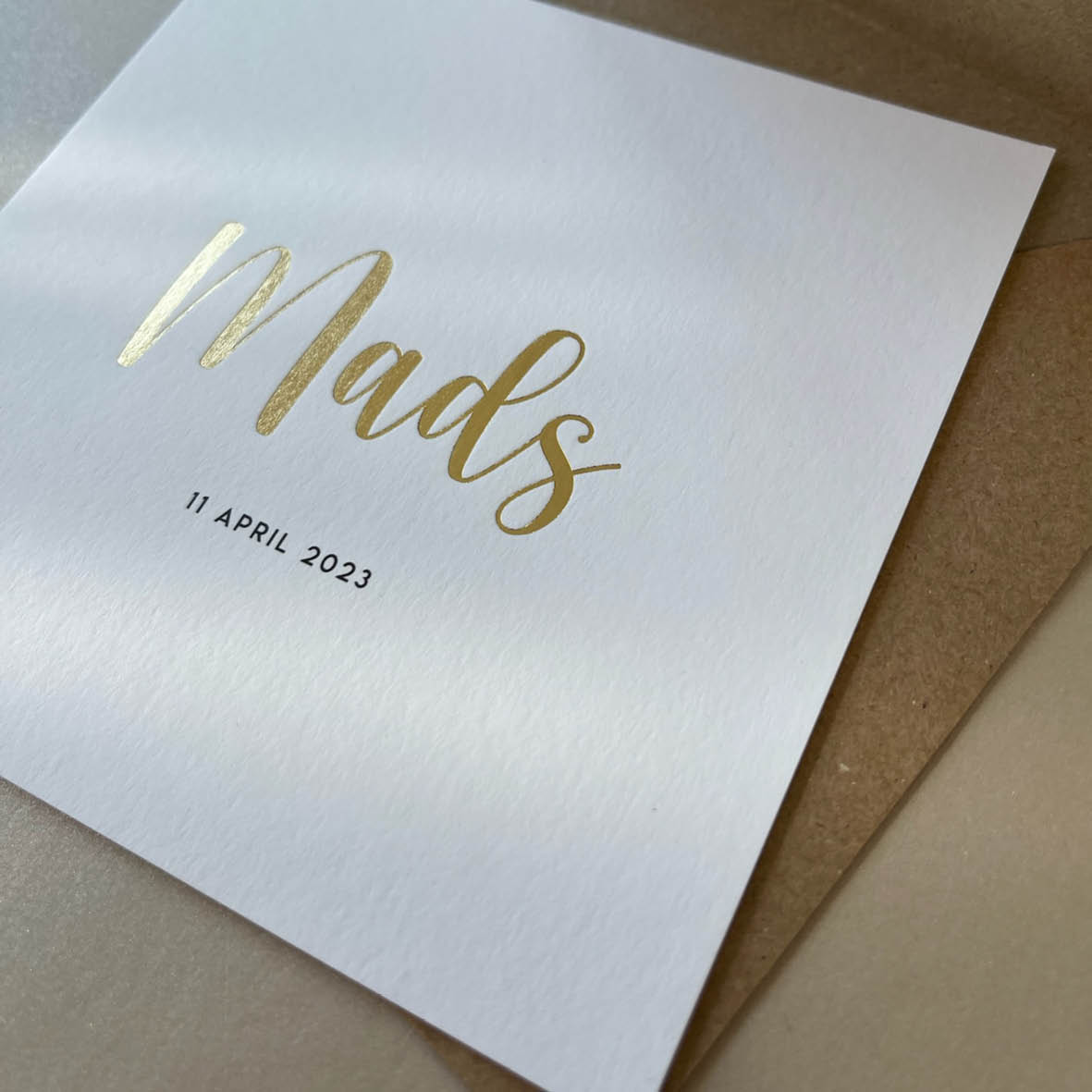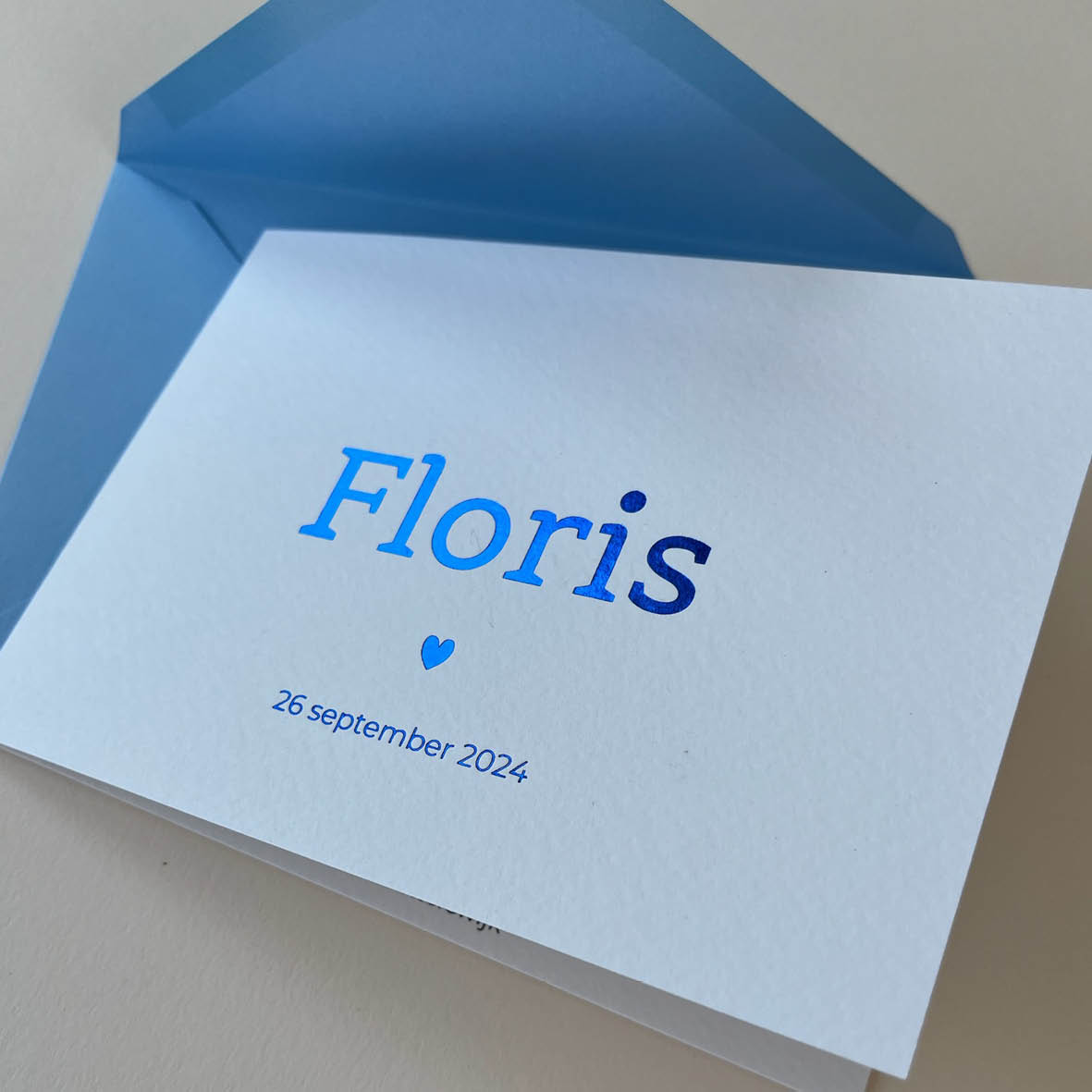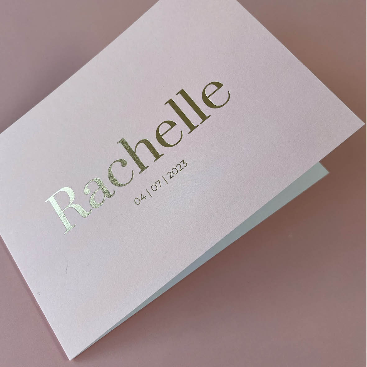 Folie geeft een geboortekaartje een luxe en verfijnde uitstraling. Van subtiele accenten tot een opvallende naam in goud, zilver of roségoud (traditionele foliedruk zelfs in maar liefst 24 kleuren beschikbaar!). Met foliedruk maak je van elk geboortekaartje een bijzonder en tijdloos ontwerp. Laat je inspireren door wat we al gemaakt hebben en ontdek hoe foliedruk jouw geboortekaartje net dat beetje extra geeft.