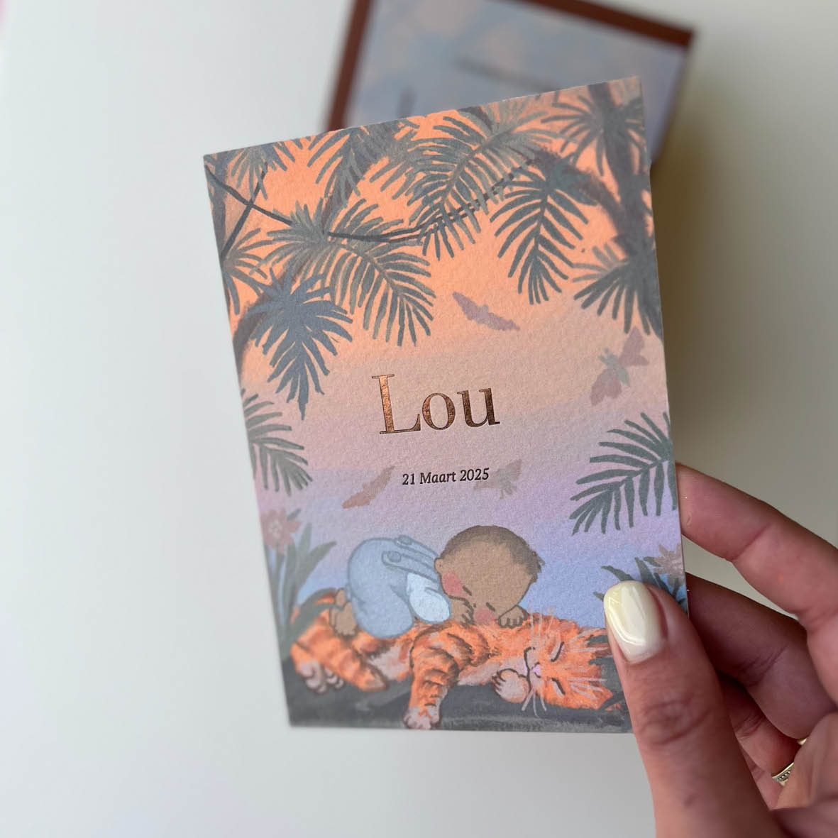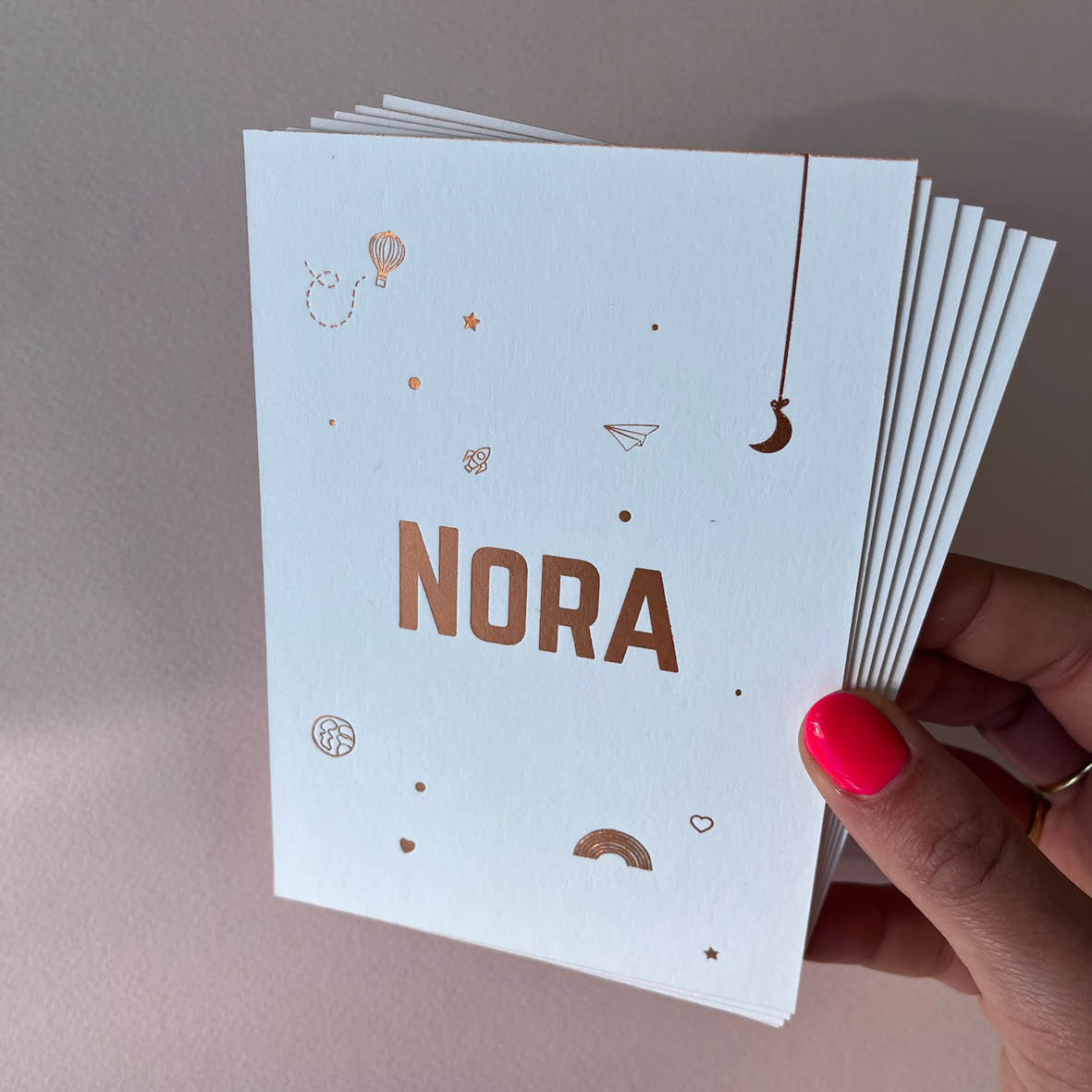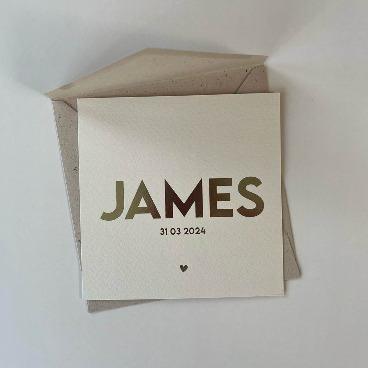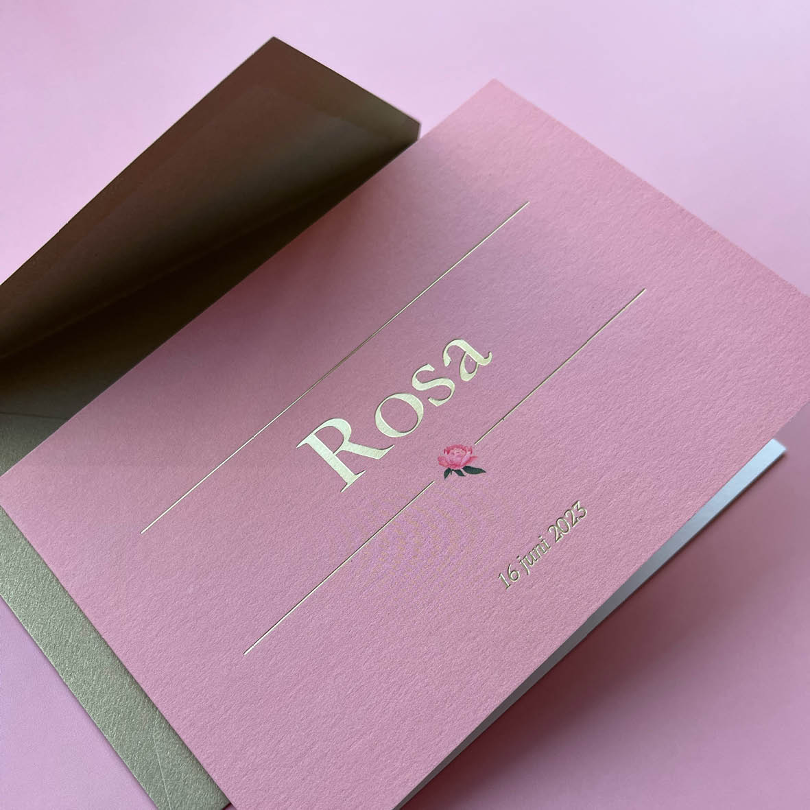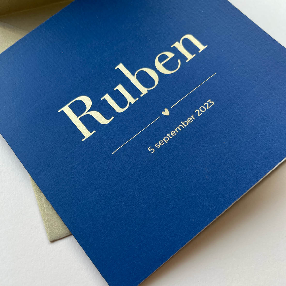 Folie geeft een geboortekaartje een luxe en verfijnde uitstraling. Van subtiele accenten tot een opvallende naam in goud, zilver of roségoud (traditionele foliedruk zelfs in maar liefst 24 kleuren beschikbaar!). Met foliedruk maak je van elk geboortekaartje een bijzonder en tijdloos ontwerp. Laat je inspireren door wat we al gemaakt hebben en ontdek hoe foliedruk jouw geboortekaartje net dat beetje extra geeft.