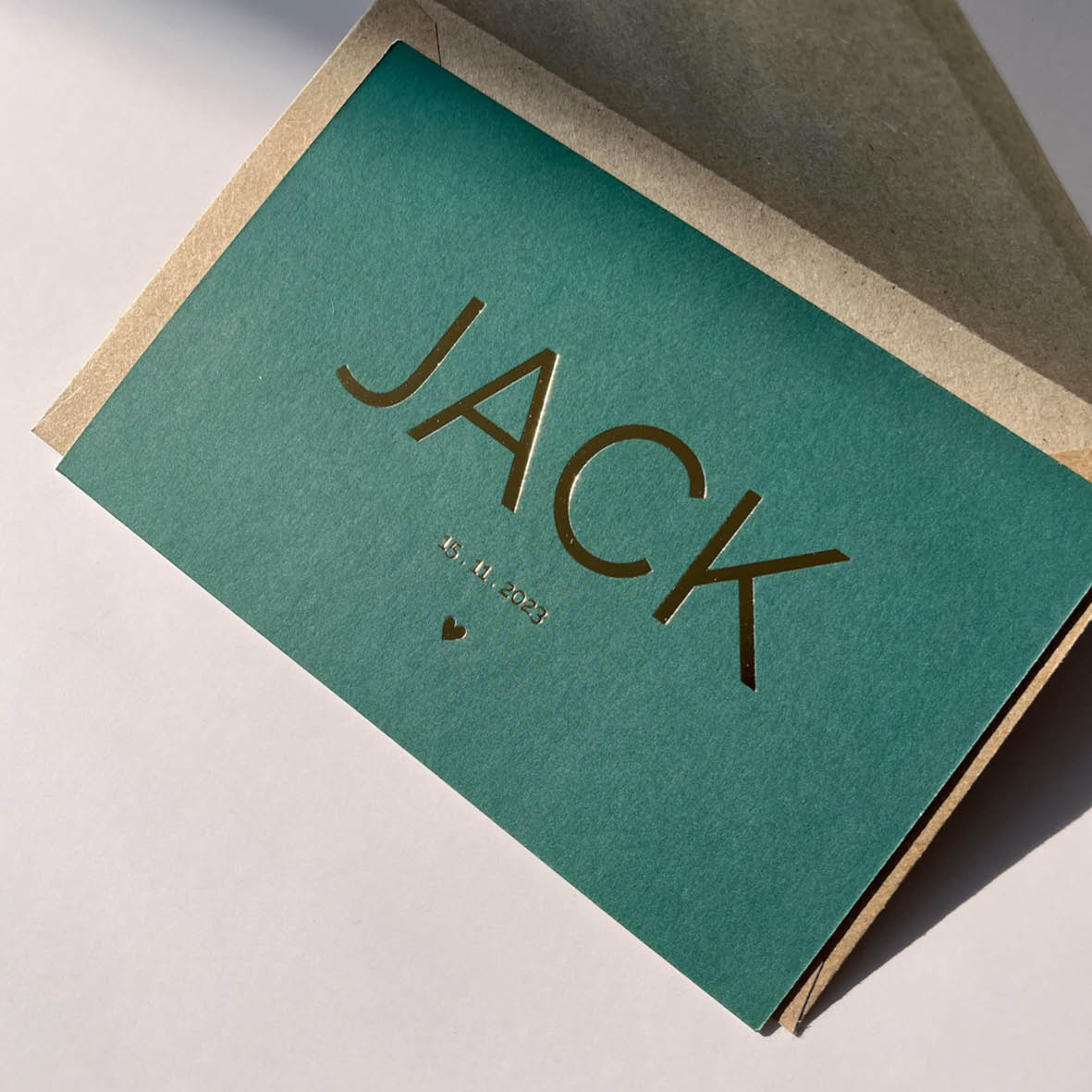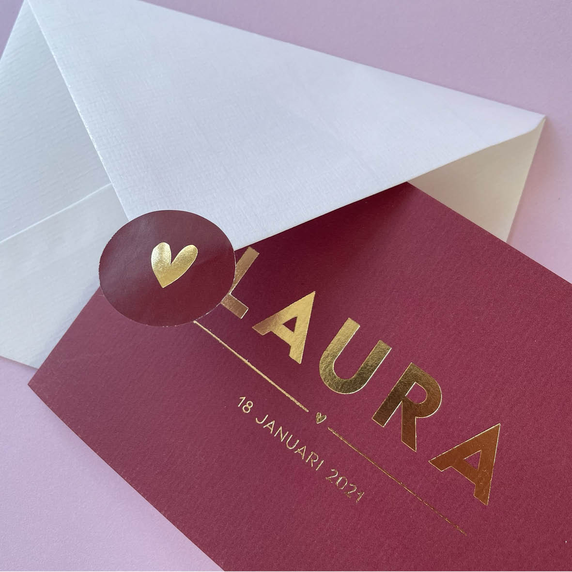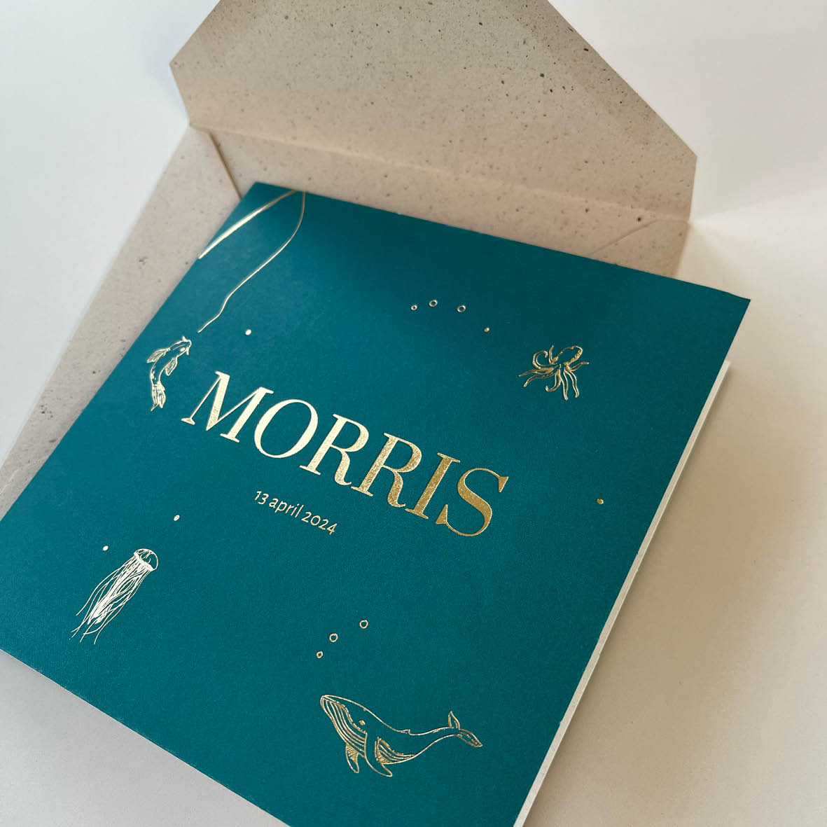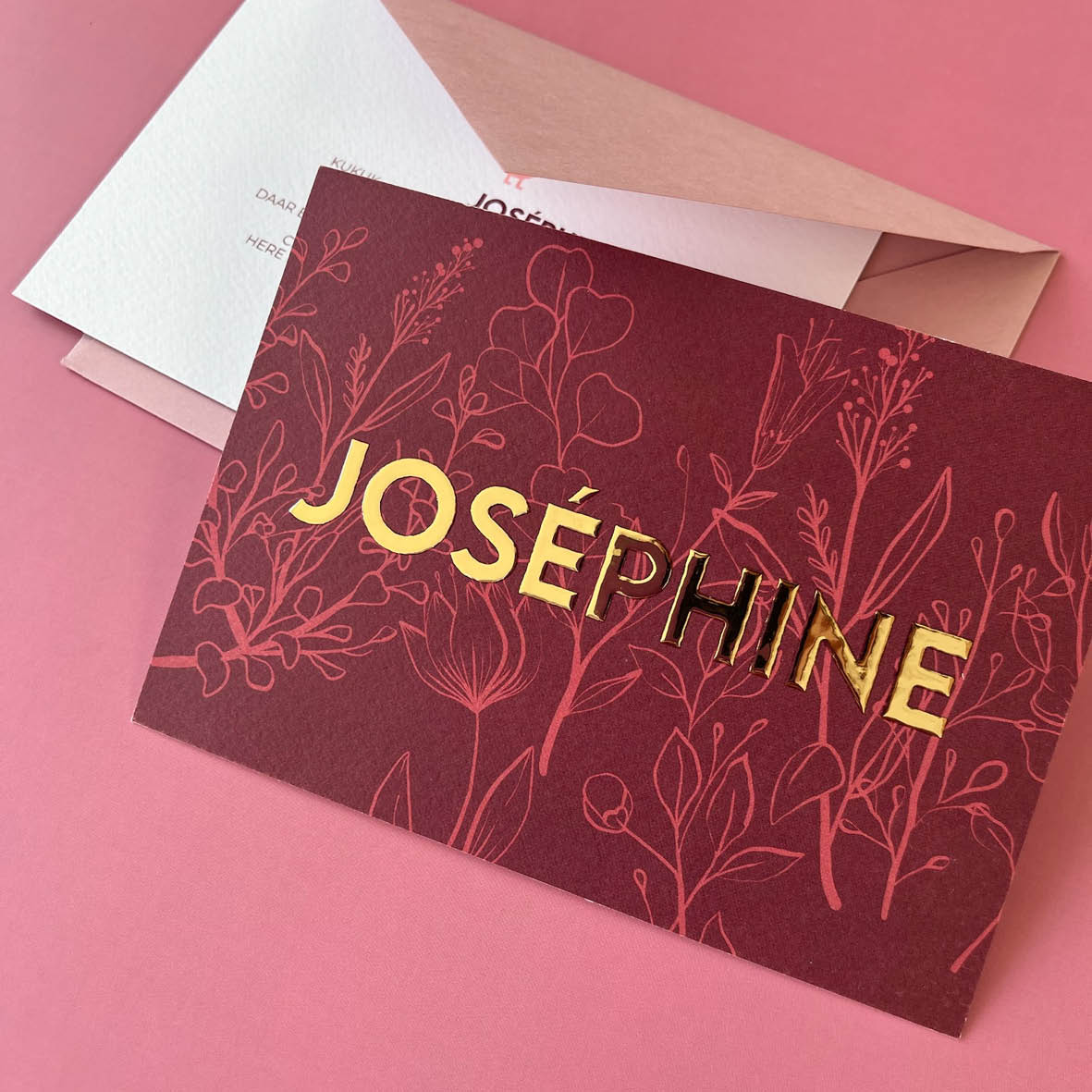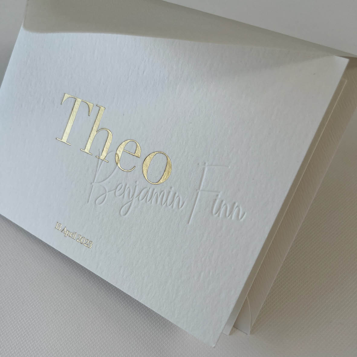 Folie geeft een geboortekaartje een luxe en verfijnde uitstraling. Van subtiele accenten tot een opvallende naam in goud, zilver of roségoud (traditionele foliedruk zelfs in maar liefst 24 kleuren beschikbaar!). Met foliedruk maak je van elk geboortekaartje een bijzonder en tijdloos ontwerp. Laat je inspireren door wat we al gemaakt hebben en ontdek hoe foliedruk jouw geboortekaartje net dat beetje extra geeft.