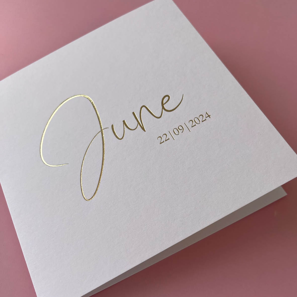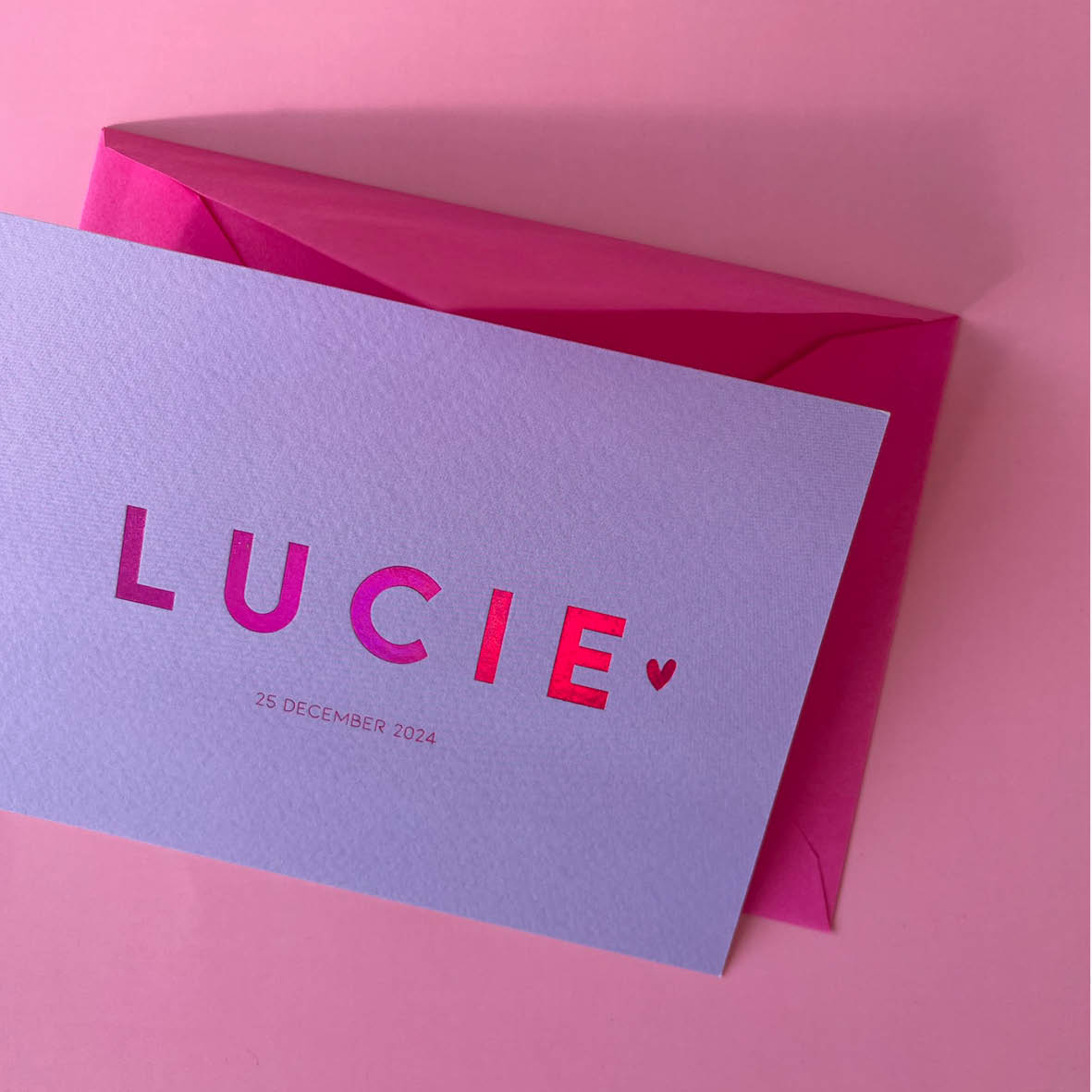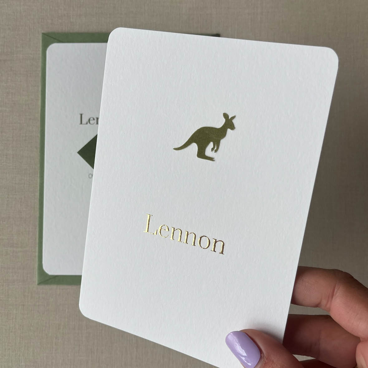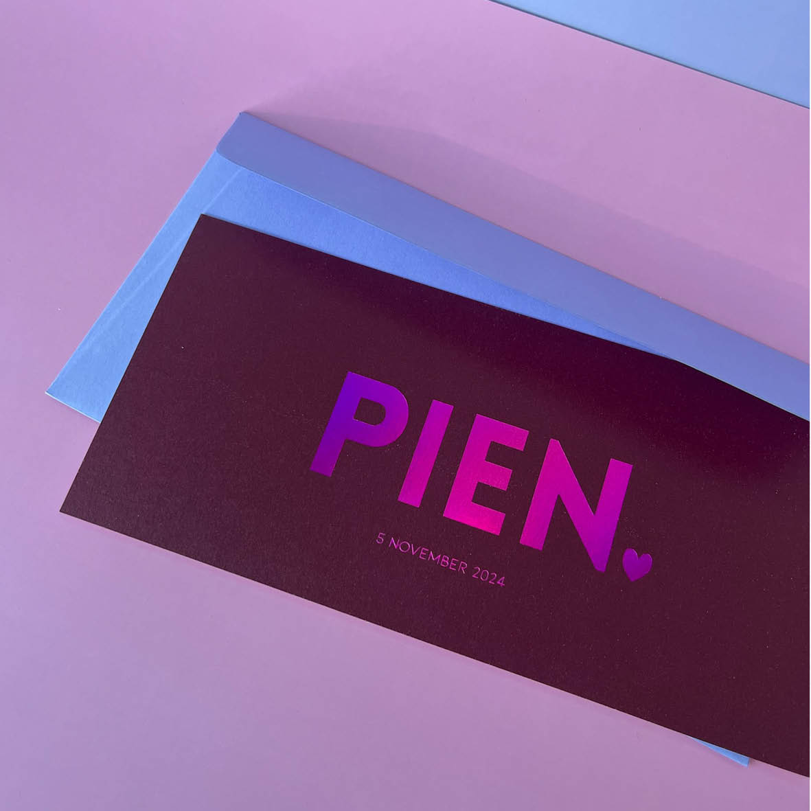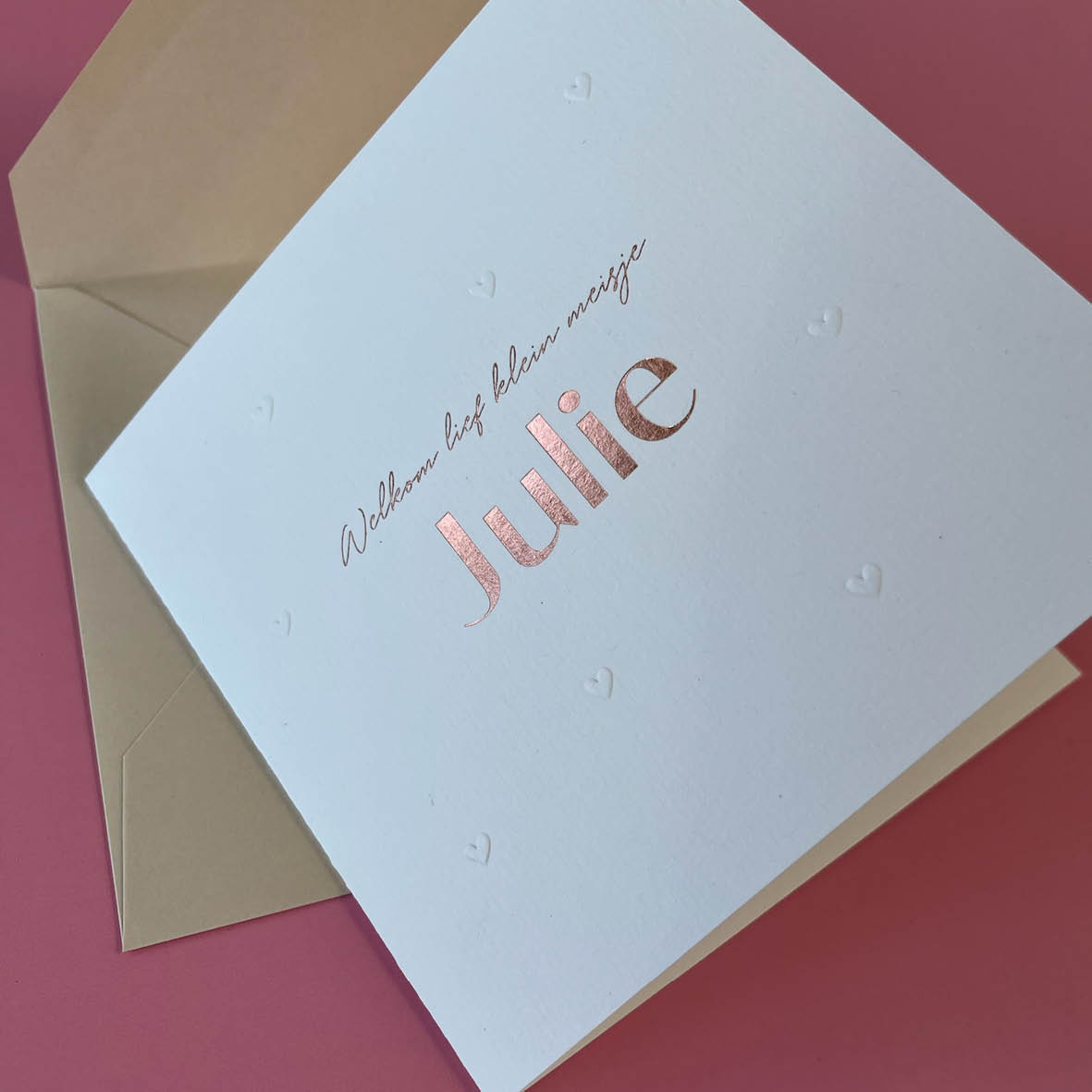 Folie geeft een geboortekaartje een luxe en verfijnde uitstraling. Van subtiele accenten tot een opvallende naam in goud, zilver of roségoud (traditionele foliedruk zelfs in maar liefst 24 kleuren beschikbaar!). Met foliedruk maak je van elk geboortekaartje een bijzonder en tijdloos ontwerp. Laat je inspireren door wat we al gemaakt hebben en ontdek hoe foliedruk jouw geboortekaartje net dat beetje extra geeft.