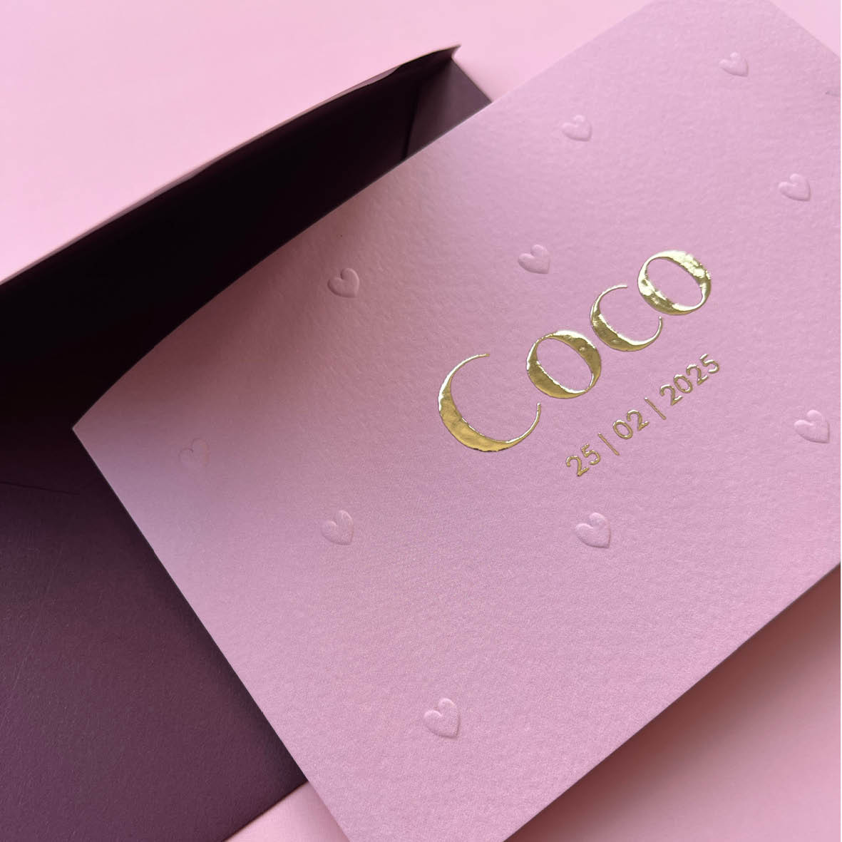 • Exclusieve geboortekaartjes met unieke druktechnieken