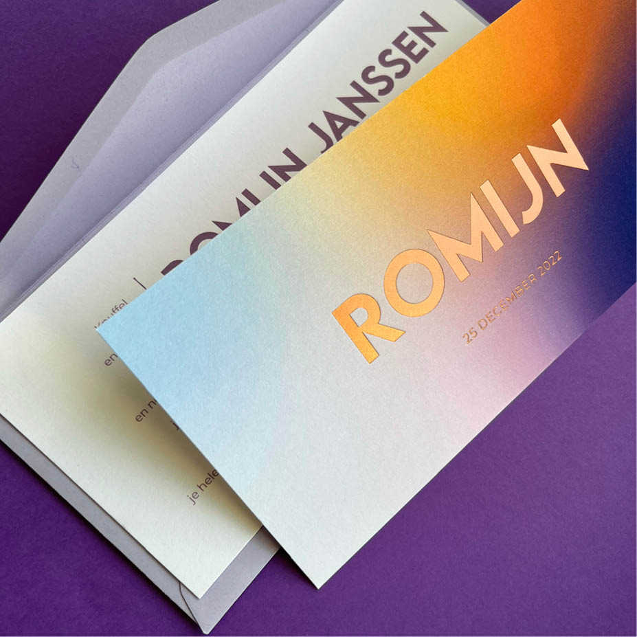 • Exclusieve geboortekaartjes met unieke druktechnieken