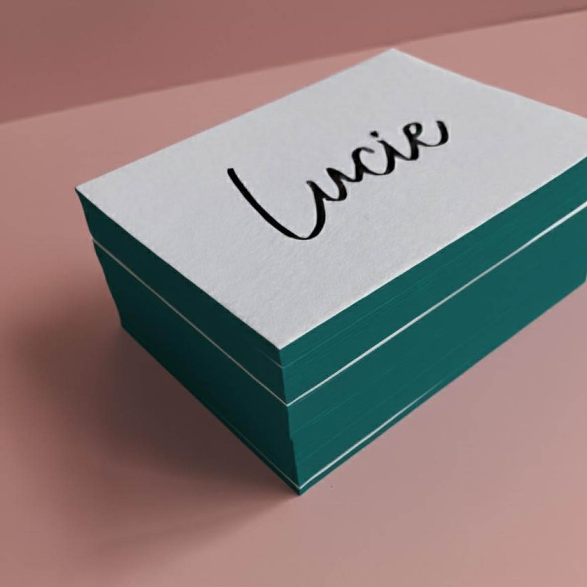 • Het is een pure en luxe druktechniek, vaak toegepast bij namen, hartjes, of subtiele details.